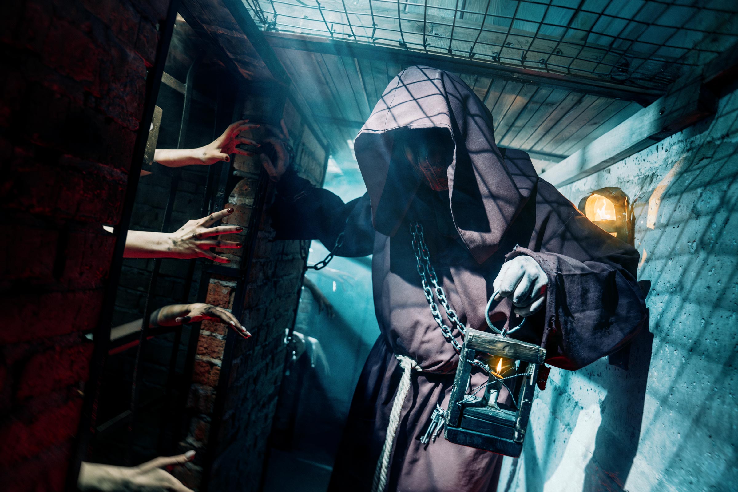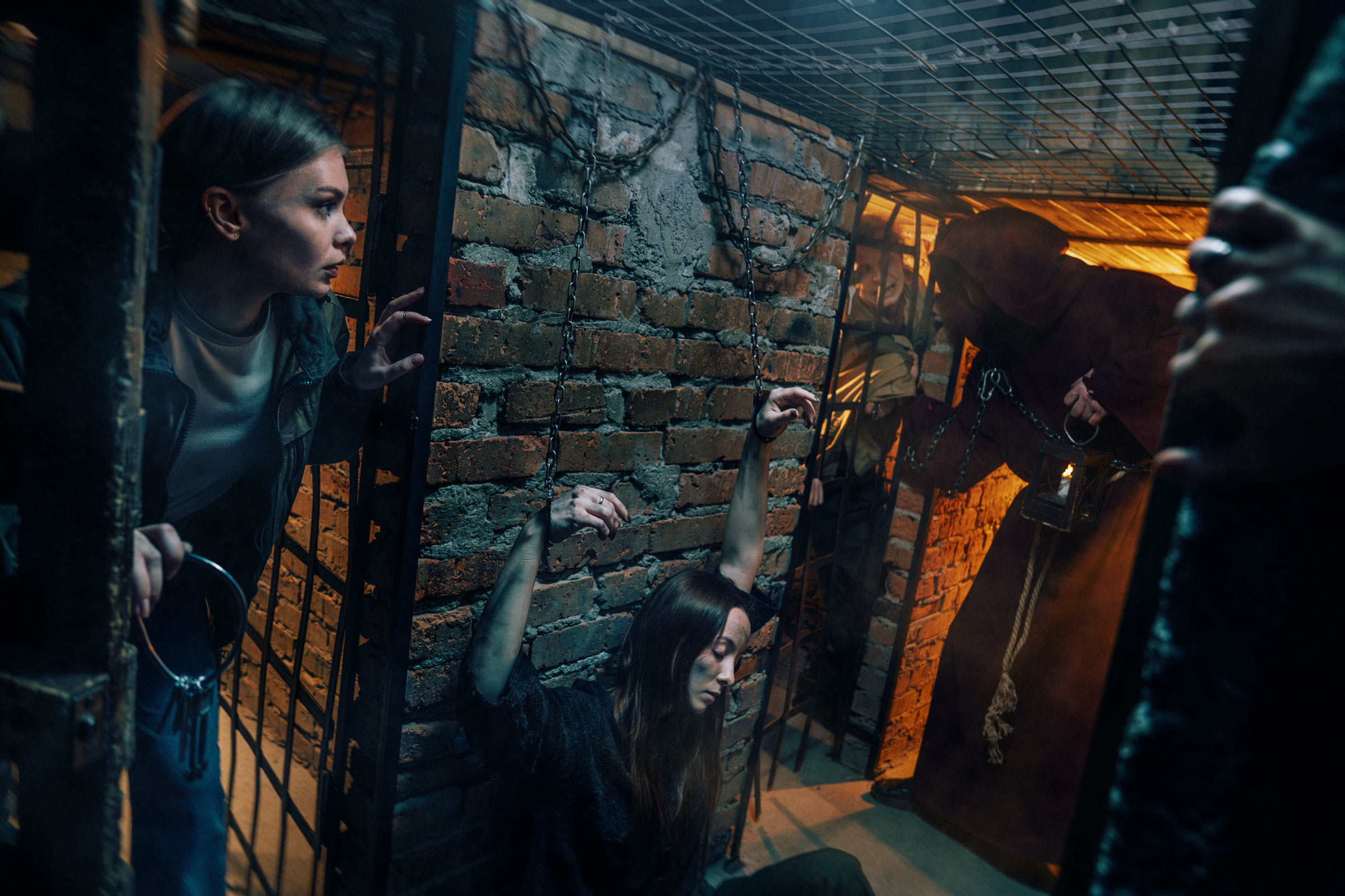 Ты приходишь в себя в холодной каменной темнице. Грубое железо впивается в запястья, перед глазами — ржавая решётка и тусклый свет факела. Рядом — другие клетки.